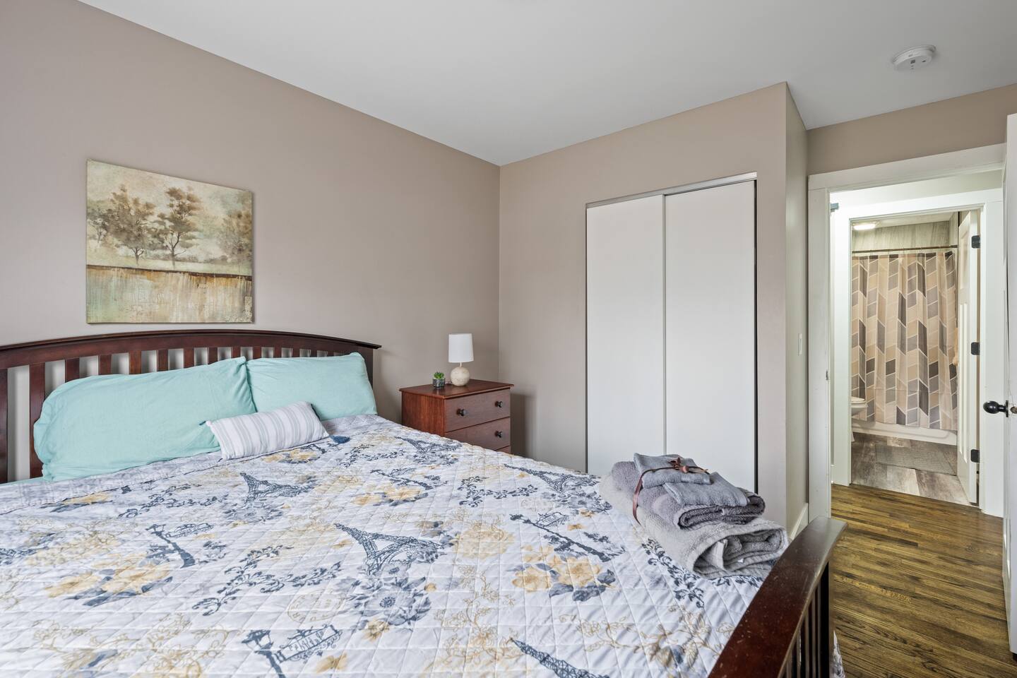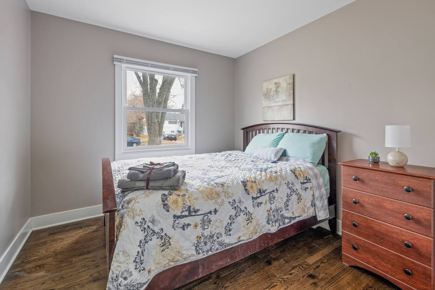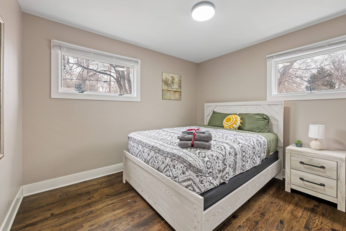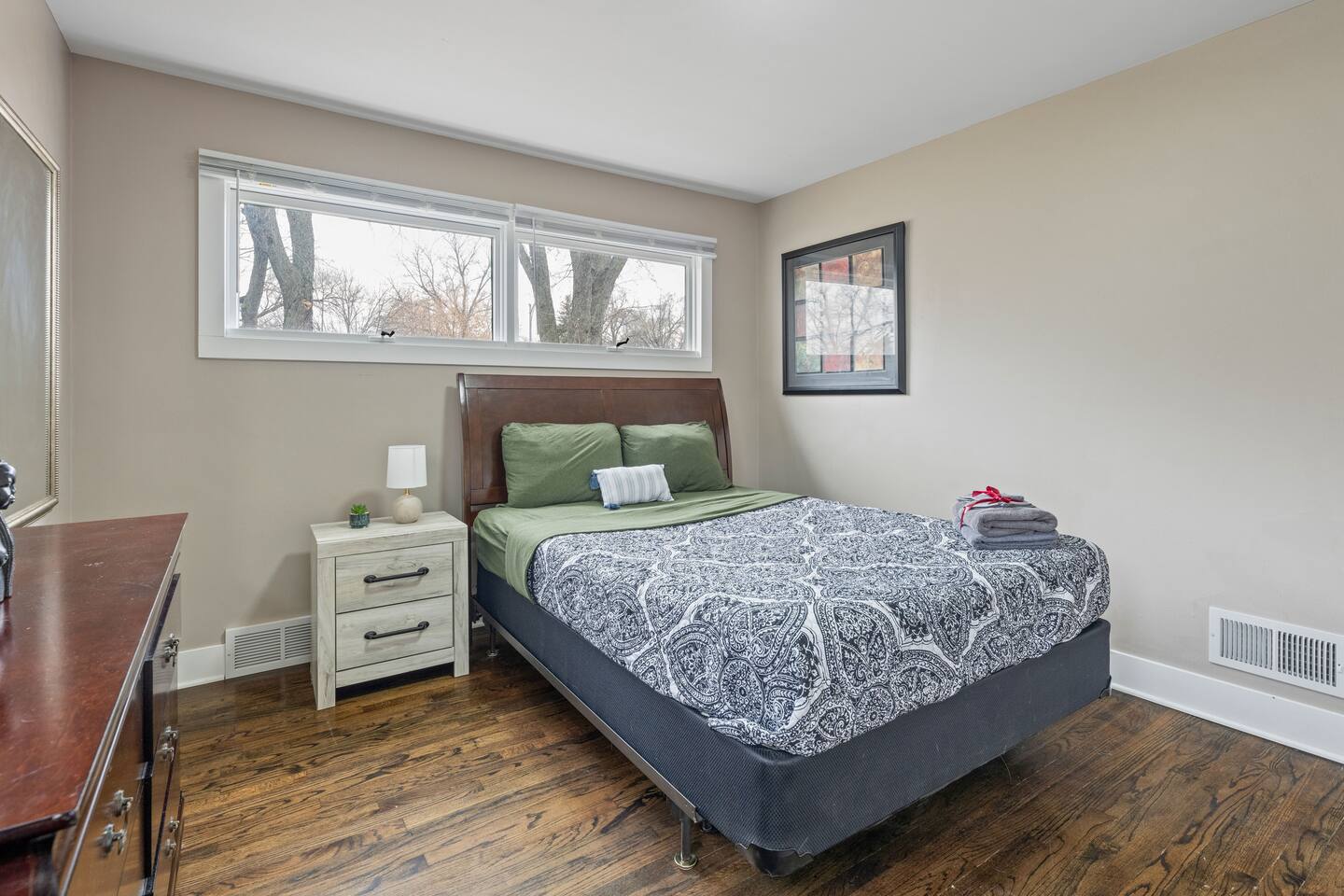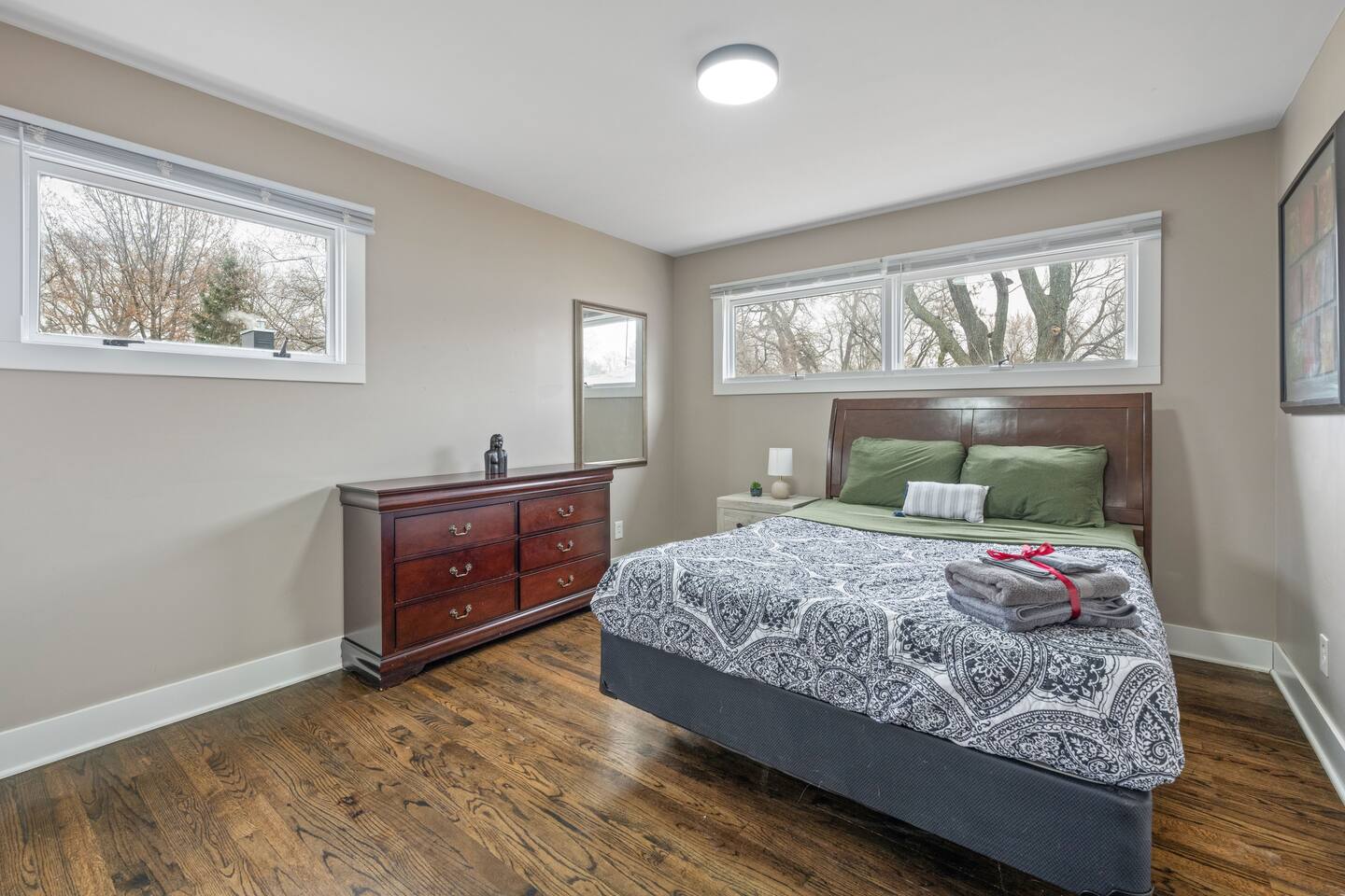 You’ll have the whole house to yourself. All four bedrooms feature comfy queen beds, and there are two bathrooms—one with a tub, the other with a walk-in shower. If you need more sleeping space, we’ve got a queen-sized air mattress available upon request. The kitchen comes stocked with the basics like pots, pans, oil, salt, pepper, and coffee. You’ll also find a full dining area, dishwasher, microwave, and a work desk if you need to plug in. The washer and dryer are yours to use, and extra blankets and towels are always on hand. Outside, the home sits about a block off 72nd Street, which means quick access to Omaha’s main north-south road, without the street noise. The driveway fits four cars easily, and there’s always street parking nearby.