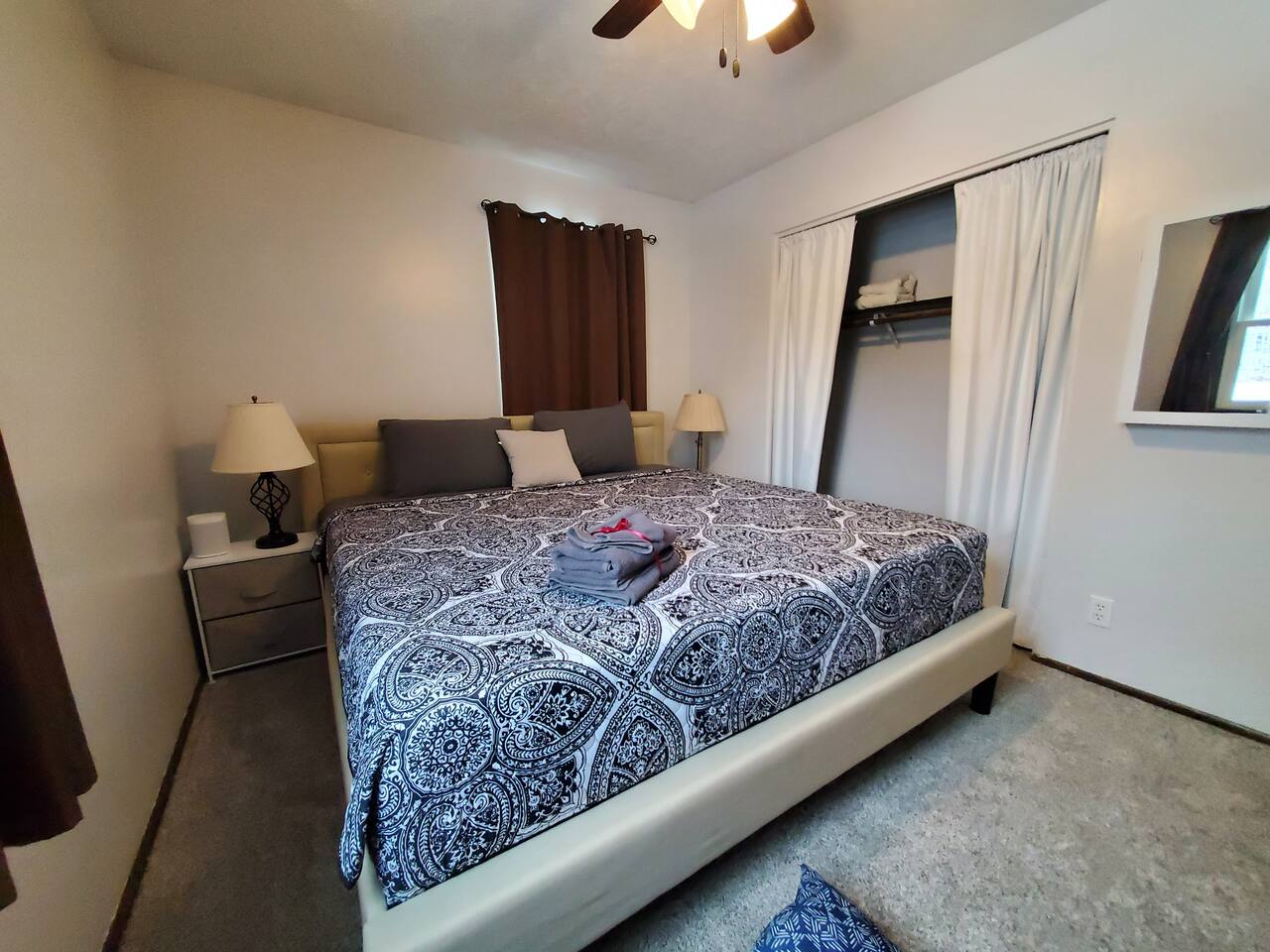 There are two exterior cameras on the property: one at the front door and one at the back. They’re there for safety and peace of mind. There are no cameras inside the house — your privacy matters, and we respect it. We keep the house clean and stocked with a few complimentary basics, including some food items. Feel free to use them, but please do so at your own discretion. If you'd rather stick to what you bring, that’s perfectly fine too. We're happy to share our space and hope you enjoy your stay.