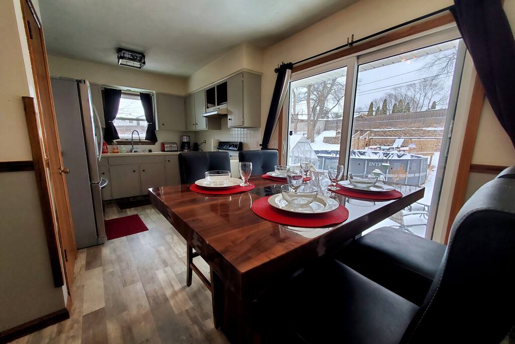 Maple House is a clean, comfortable 4-bedroom home located in Omaha’s quiet Maple Village neighborhood. It’s close to the interstate, but far enough from the road that you won’t hear it. The biggest draw? A large above-ground pool with a brand-new wraparound deck — perfect for summer days when doing nothing sounds like a plan.
