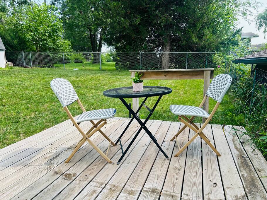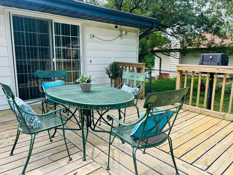 The house is tucked into a quiet cul-de-sac in Ralston — a safe, private neighborhood just south of central Omaha. It’s the kind of spot where kids can play outside and the only traffic is from your own group. You’re close enough to the interstate to get anywhere in the city quickly, but far enough from the road that you won’t hear a thing. We’re pet lovers, so we don’t charge extra for up to two dogs. The backyard is huge and fenced all around.