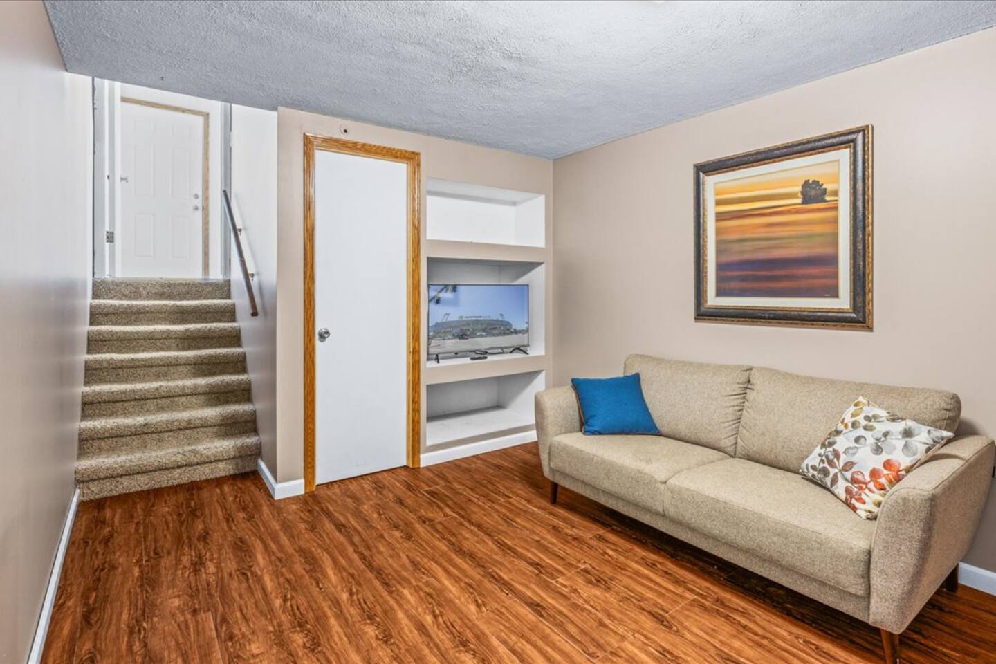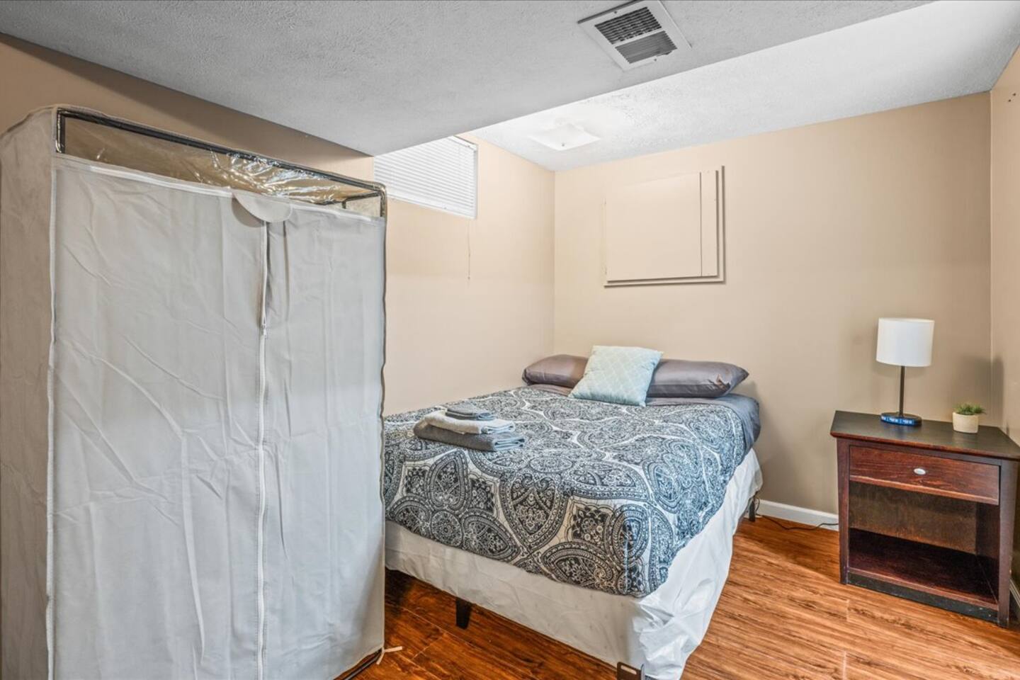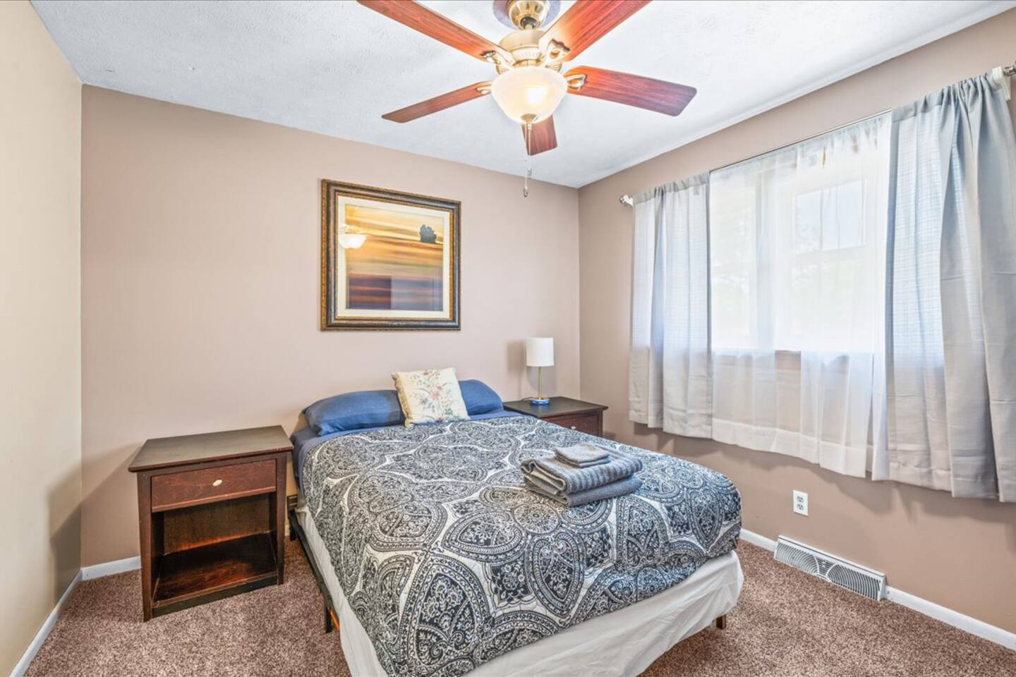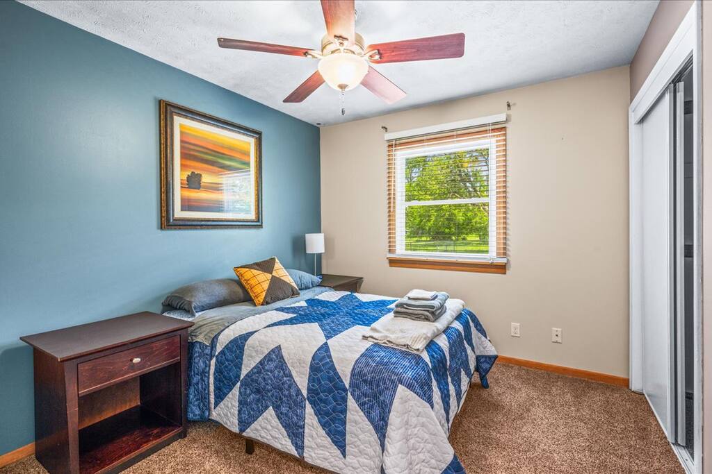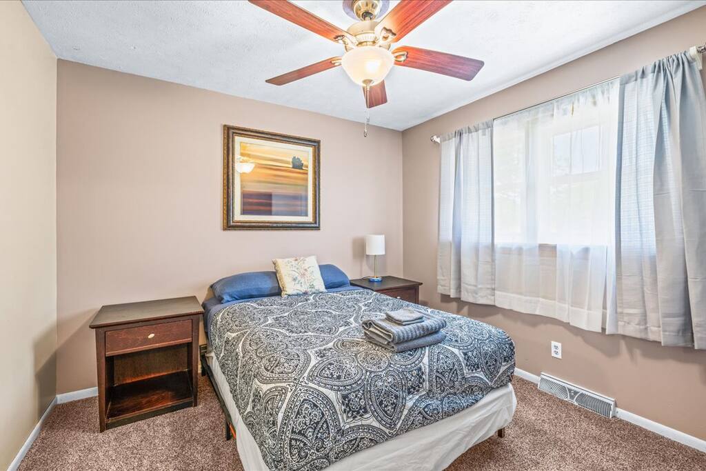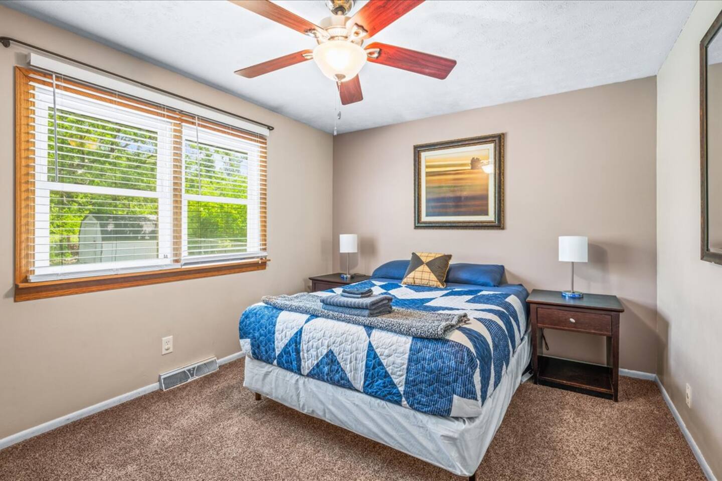 The house has four bedrooms with queen beds in the master bedrooms and full sized beds in the other three. There are two full bathrooms (one with a tub and one with a shower). The last bathroom only has a toilet (located next to the basement bedroom). The "fifth bed" is a futon couch that opens up into a twin sized bed. Pet policy We don’t charge extra for the first two pets. If you’re bringing more, let us know ahead of time.